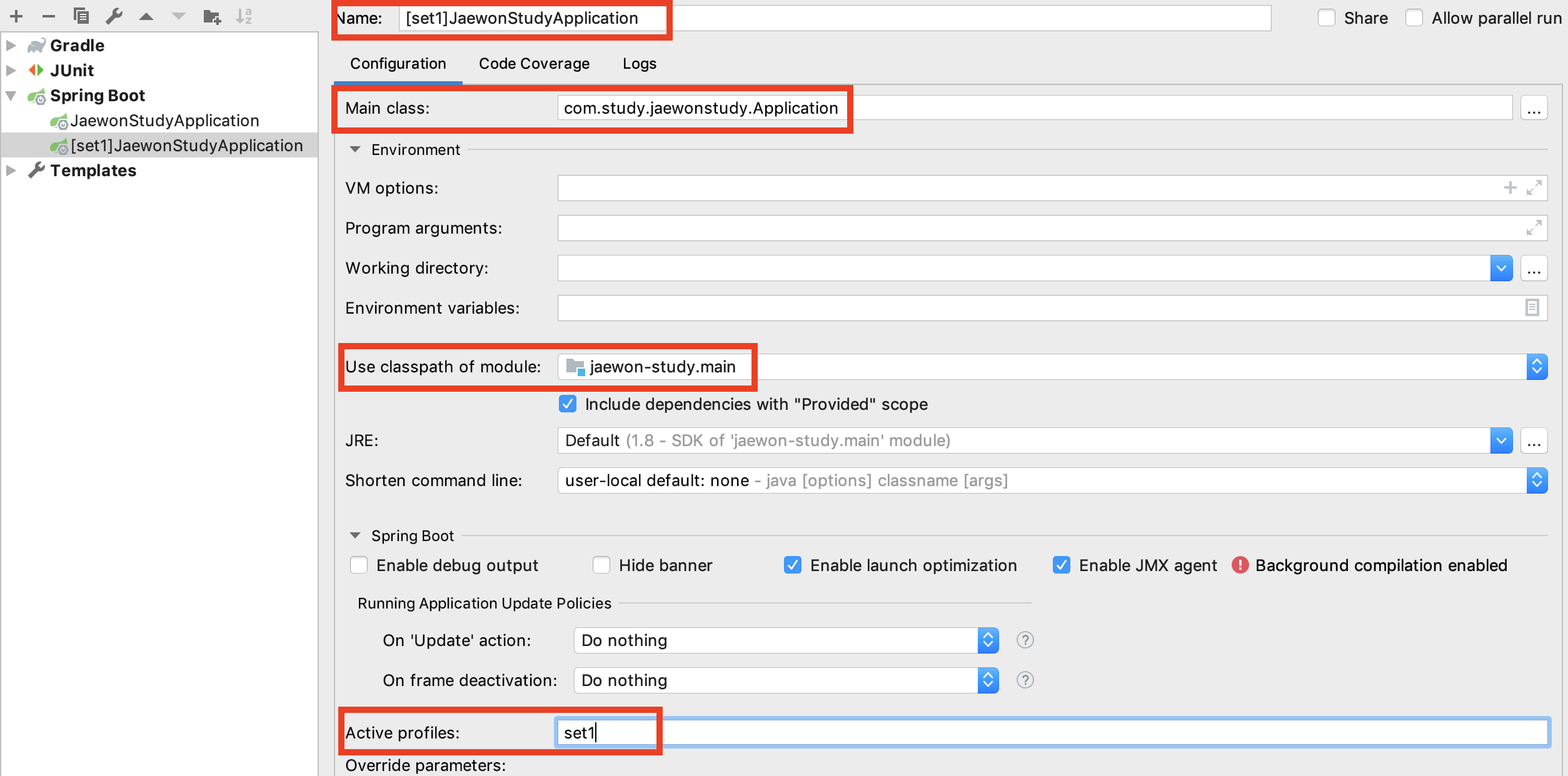4. 프로젝트 set1, set2 Profile 설정하기