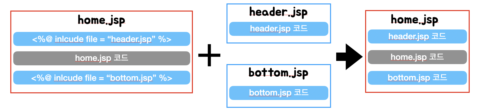 - 해당 jsp페이지가 컴파일될 때, 참조하는 파일(include)도 함께 컴파일 된다.