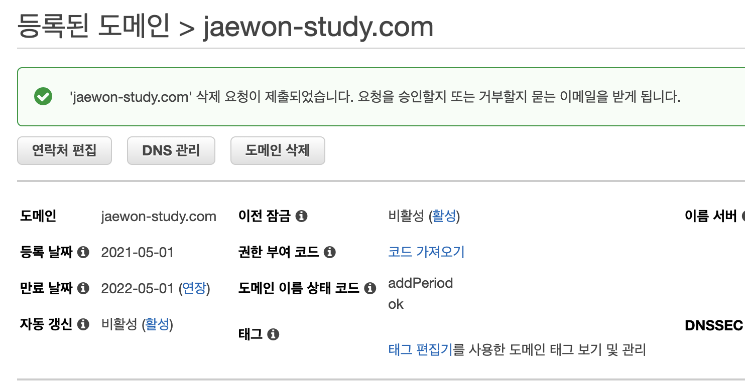- Route 53 메뉴로 들어가서 삭제하고자 하는 도메인을 확인하여 진행한다.