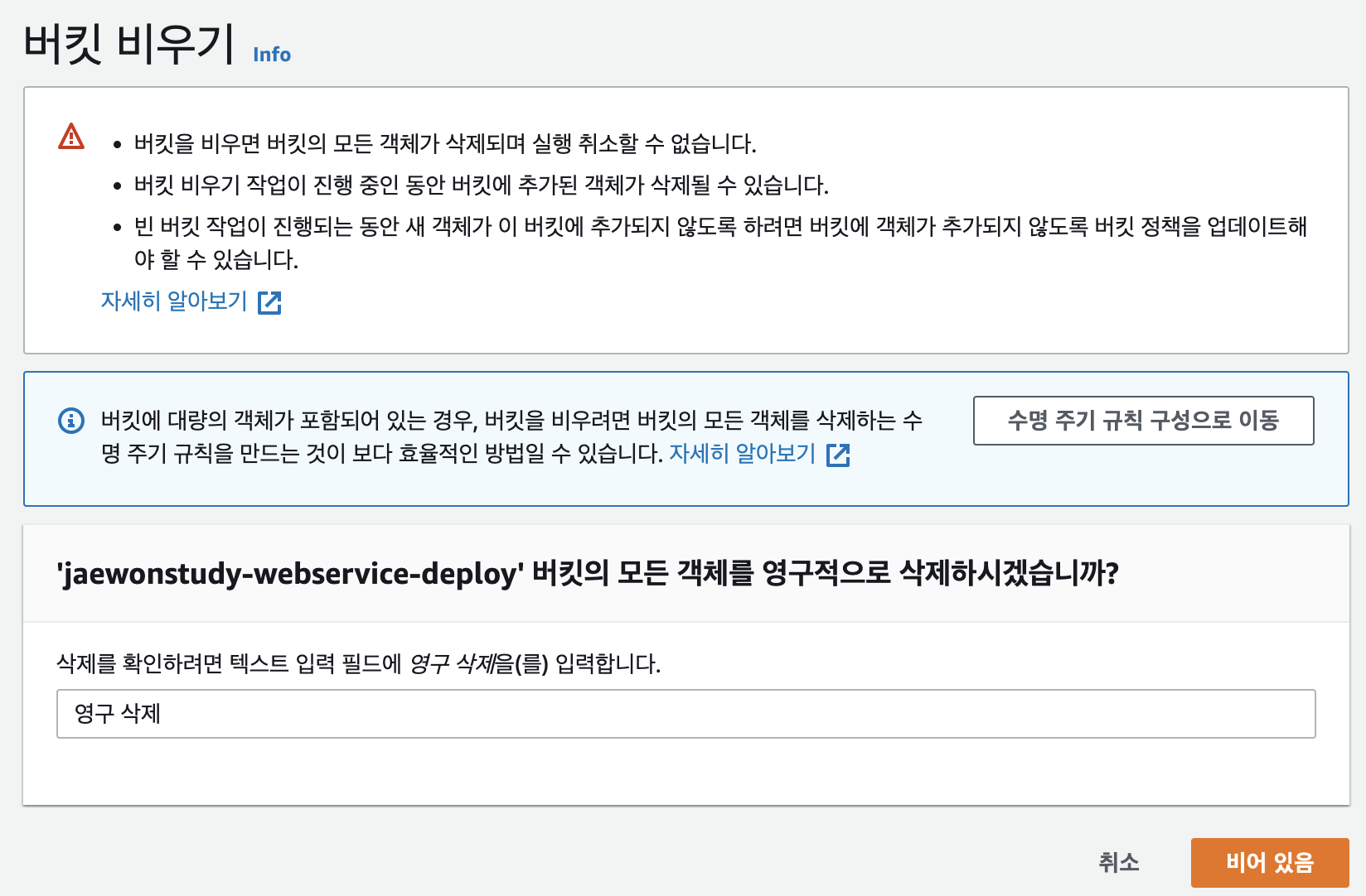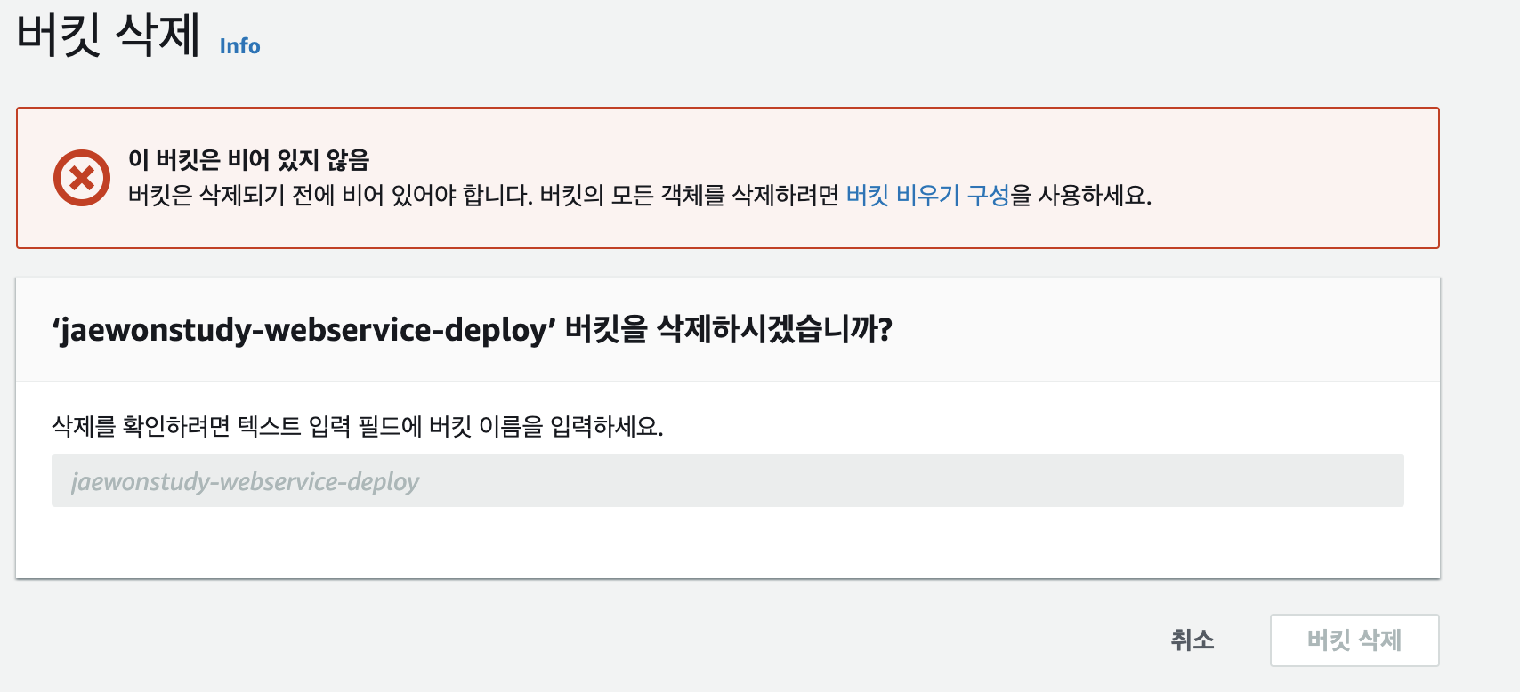 - 이번 프리티어 사용하면서 AWS S3도 사용하여, 해당 내용도 삭제를 진행한다.