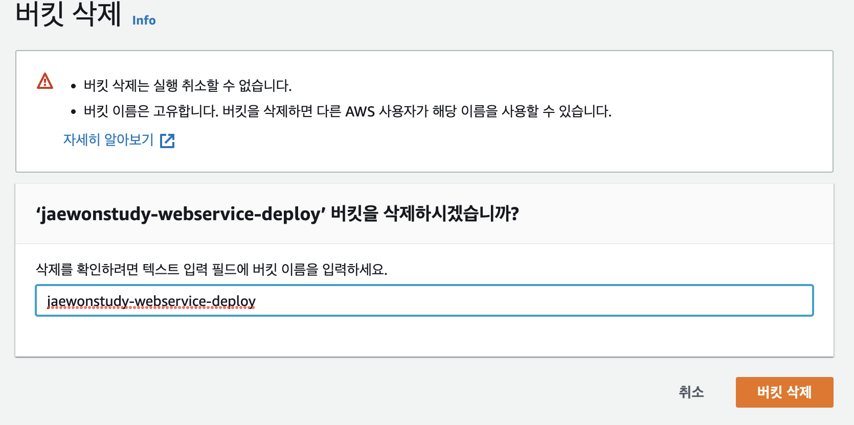 - 이제 다시 S3 삭제를 진행한다.