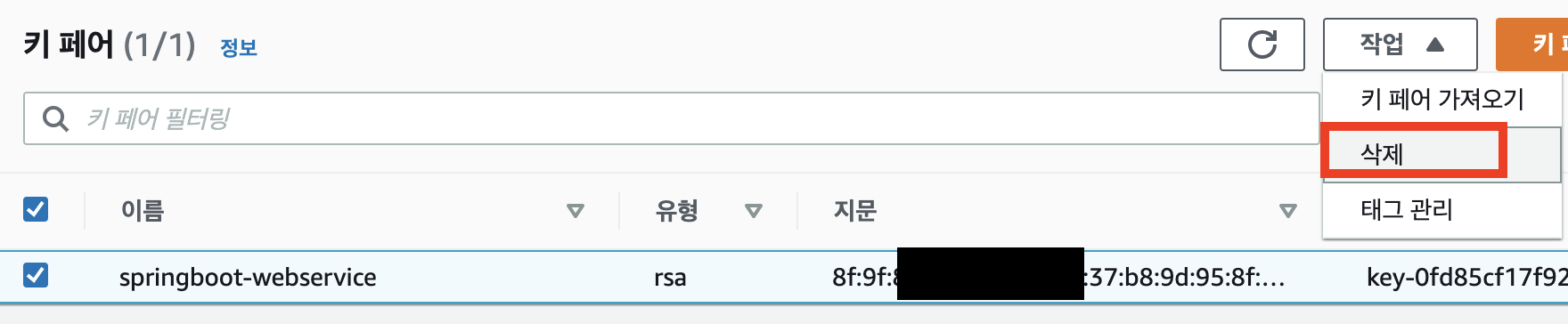 - 키페어 삭제
