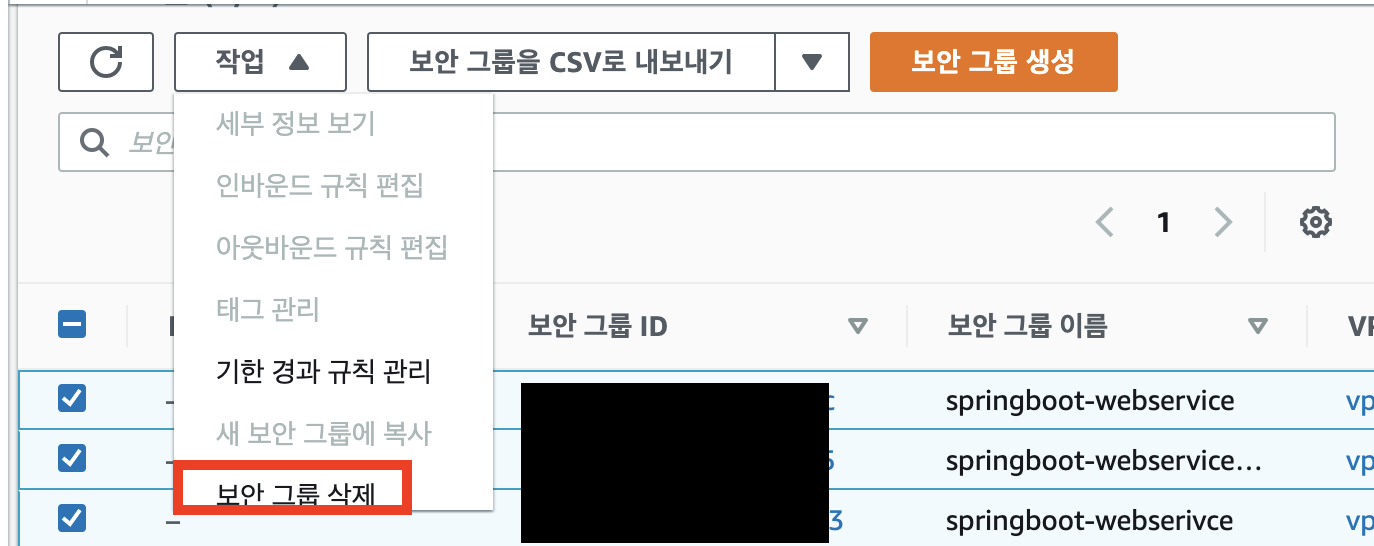 3. 보안그룹 삭제하기