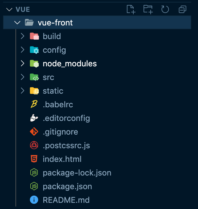 - SpringBoot 프로젝트에 vue프로젝트를 개발할 디렉토리를 생성합니다.(해당 글에선 vue라고 사용하였습니다.)